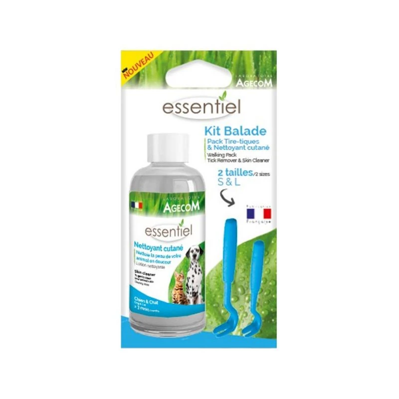 Contenu : 2 crochets à tiques (S et L), 1 nettoyant cutané de 50 ml