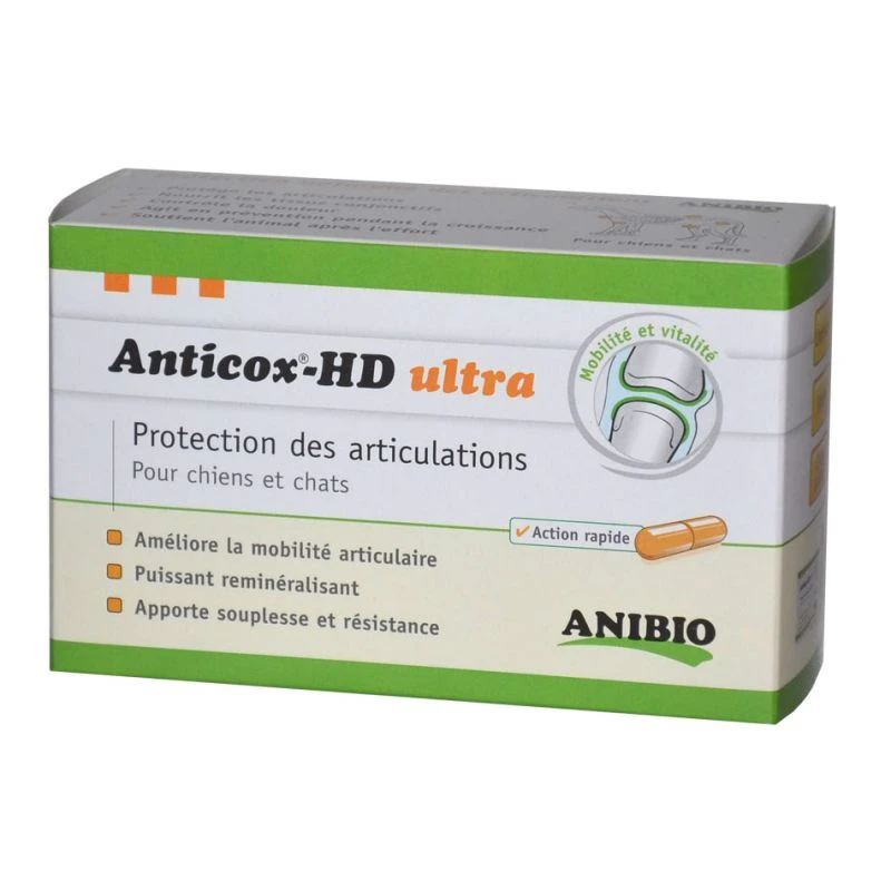 Le complément alimentaire Anticox HD Ultra améliore la mobilité articulaire des animaux. Sa formule aux plantes permet de soulager les tendons et articulations.