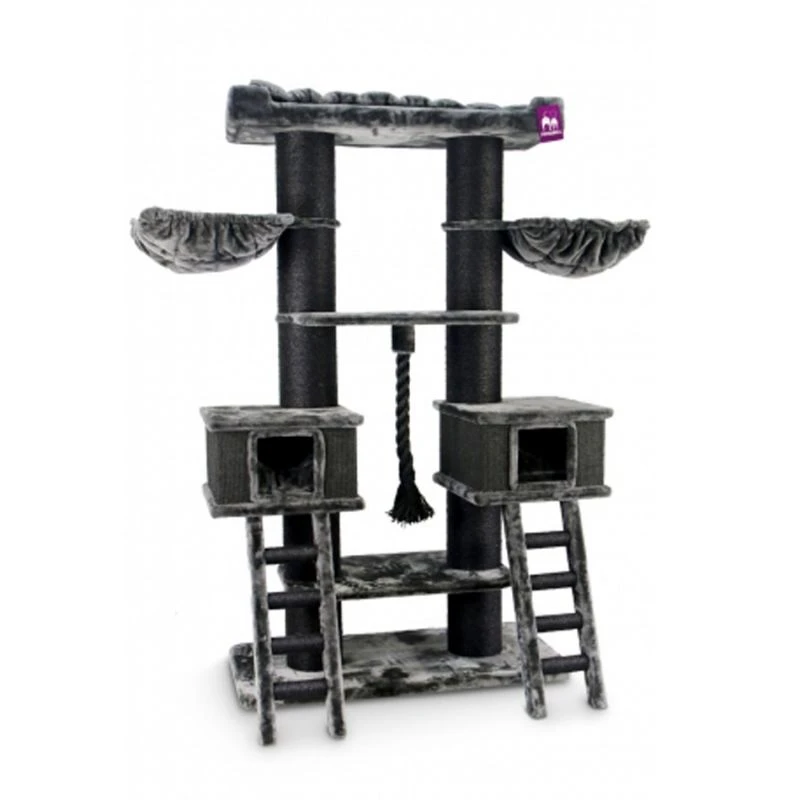 Deux grottes spacieuses avec des marches pour y accéder apportent un abri chaud et douillet pour vos chats. Les hamacs matelassés extra-larges et le fauteuil de salon sur le dessus offrent des espaces d’observation et de repos haut de gamme.