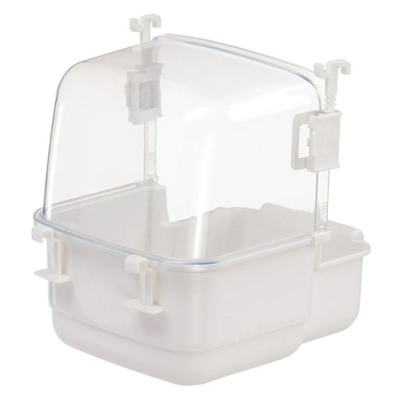 Cette baignoire pour perruches est en plastique transparent non toxique avec protection contre les projections d’eau. Le fond antidérapant et le perchoir sont très pratiques pour les oiseaux.