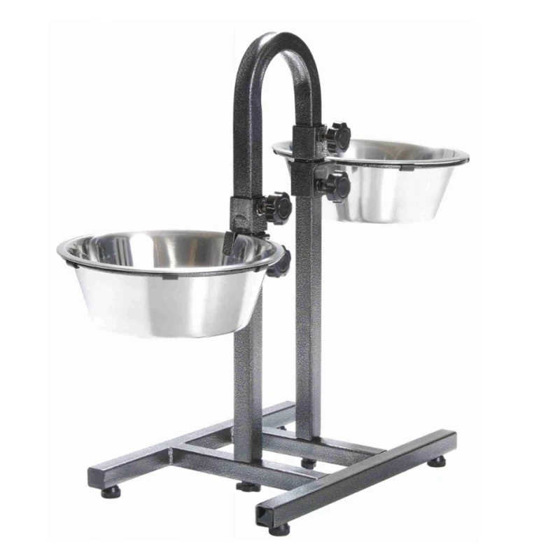 Le bar pour chien se règle à l’aide d’une molette permettant d’adapter la hauteur des gamelles en fonction de la taille du chien. Il permet deux positions différentes de l’écuelle et peut être adapté pour deux chiens.
