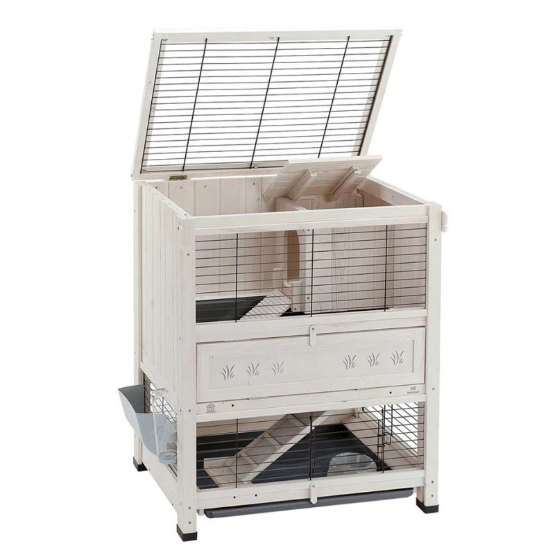 Le Cottage Mini comprend deux étages, offrant ainsi à votre rongeur une grande liberté de mouvement pour ses activités quotidiennes. La porte, présente sur la partie inférieure du clapier, vous permet de faire sortir votre animal à tout moment.