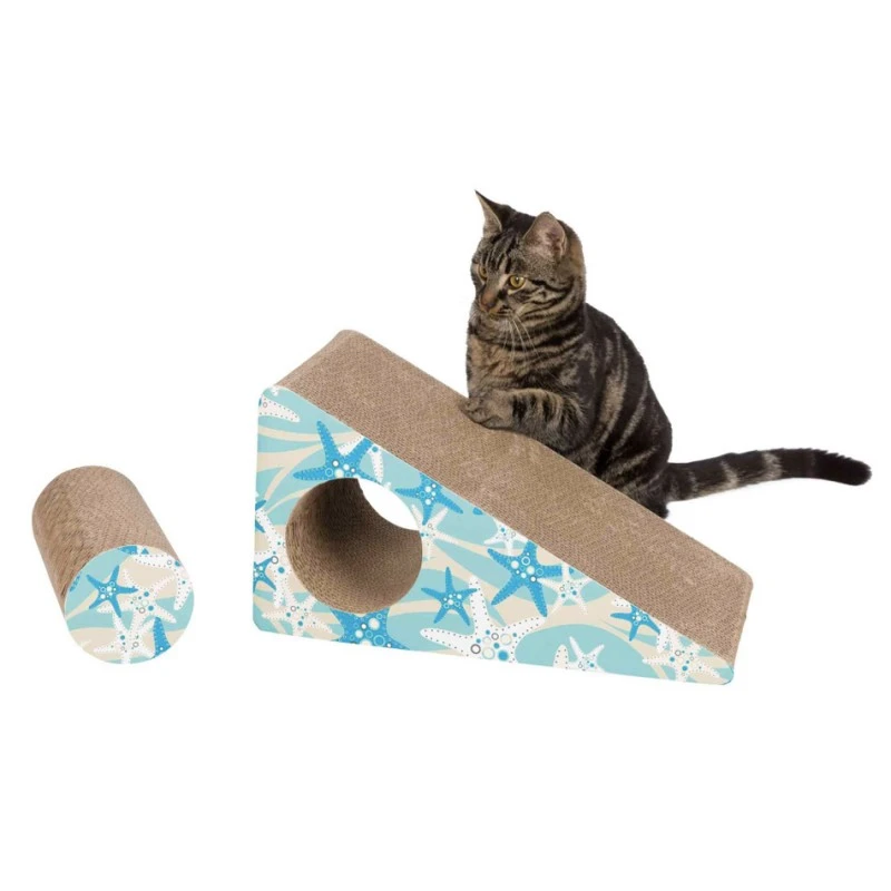 Le griffoir pour chat sous forme d’une rampe permet au chat de s’amuser tout en se faisant les griffes.