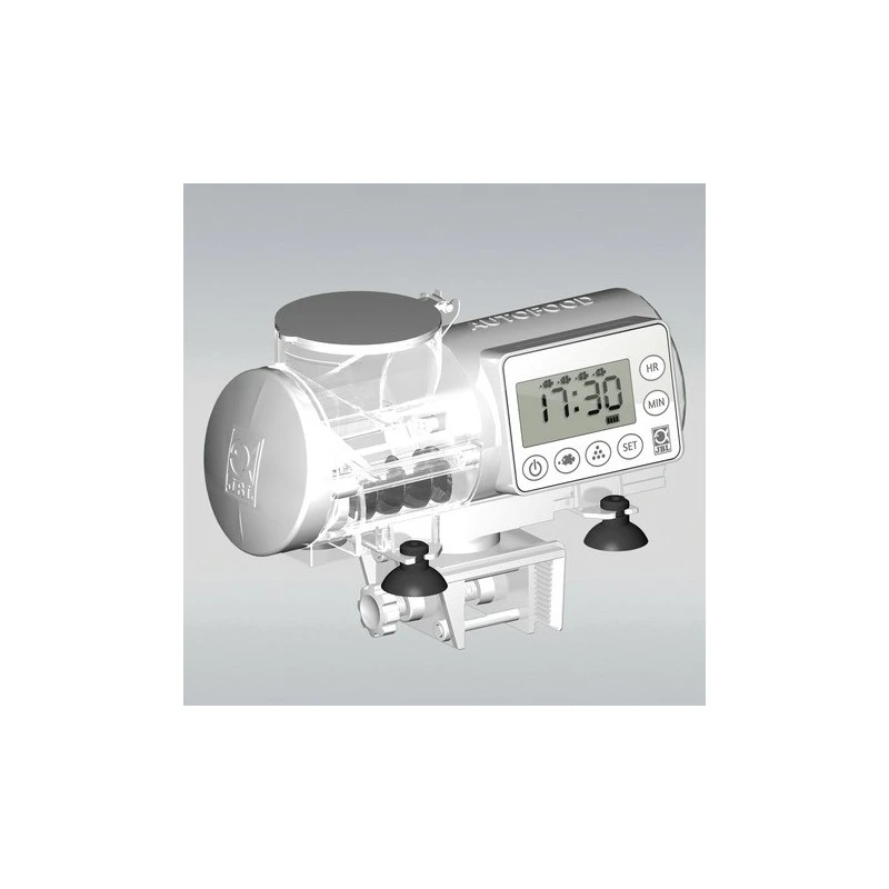 Distributeur automatique de nourriture pour poissons d’aquarium.