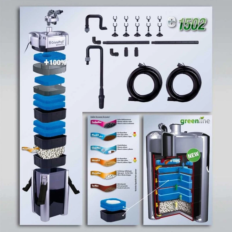 JBL Filtre extérieur CristalProfi e1502 : Filtre extérieur pour aquarium, pour une eau propre et saine. Efficacité énergétique, puissant, silencieux.
