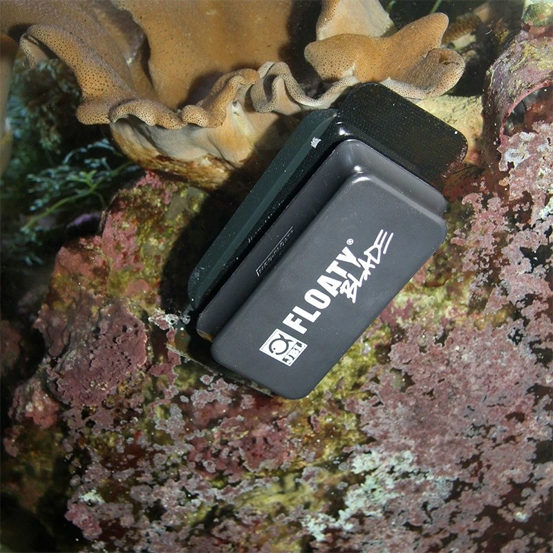 - Bord équipé d’une lame en inox capable de venir à bout des dépôts résistants sur les vitres des aquariums d’eau douce et d’eau de mer.