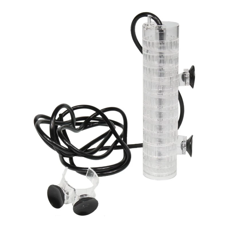 Utilisation : Raccord du réacteur au système de fertilisation au CO2 (non fournie) à l’aide d’un tuyau spécial CO2, positionnement dans l’aquarium avec ventouses.