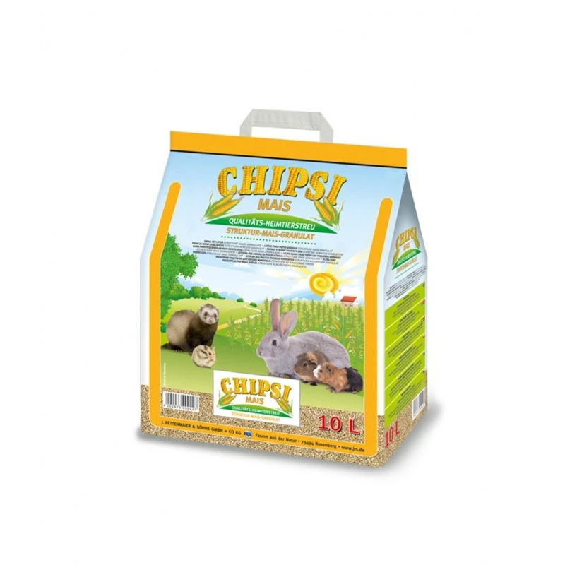 La litière Chipsi Maïs est fabriquée à partir de rafles de maïs : ce qui reste de l’épi de maïs lorsque les grains ont été enlevés. Ce produit naturel et végétal est beaucoup plus lourd que les copeaux traditionnels ou que les granulés de bois.