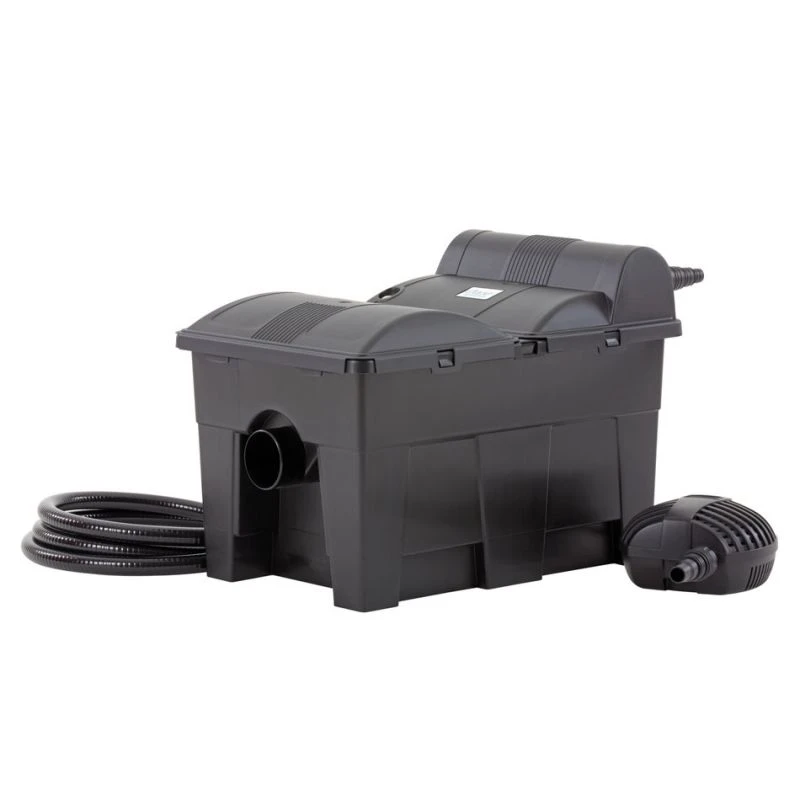 Comprend une pompe de filtration Oase 3500, un clarificateur UVC et 3m de tuyaux.