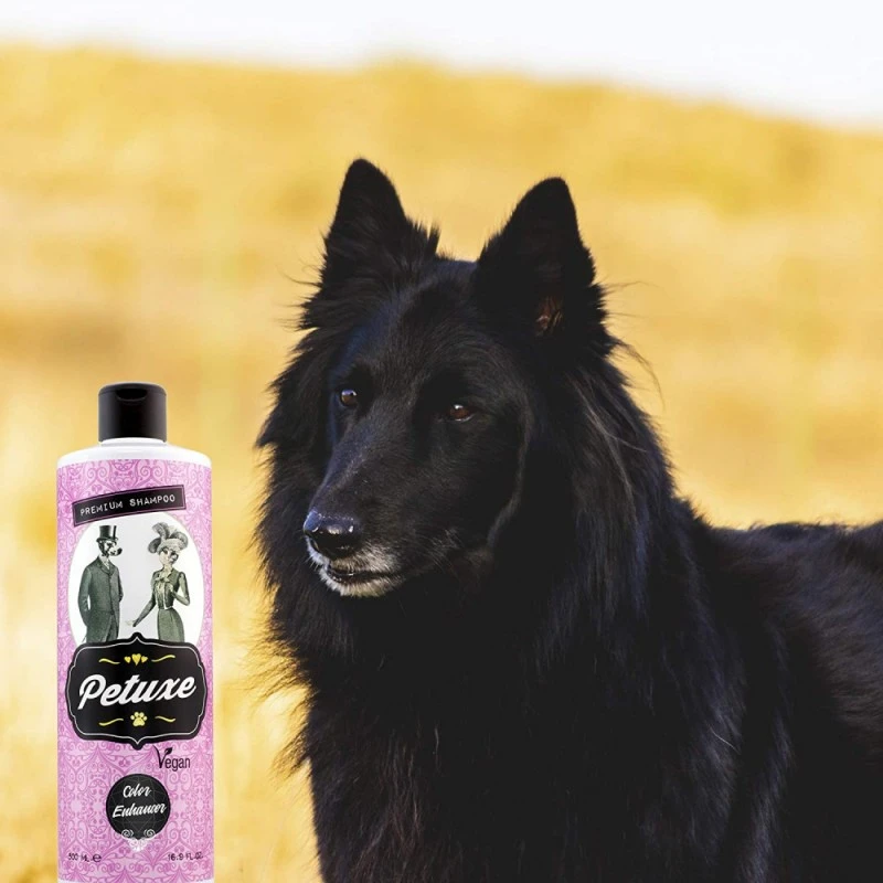 Shampoing pour chiens & chats à poils noirs ou foncés « Rehausseur de couleurs » Petuxe – 200 ml