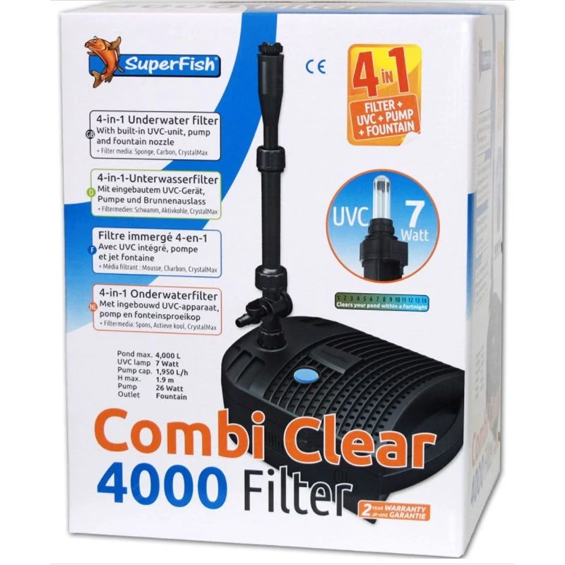 Ce filtre immergé Superfish Combi Clear est adapté aux bassins jusqu’à 2000 litres sans poissons.